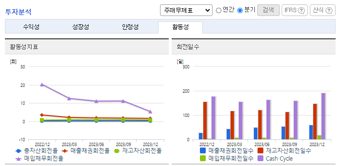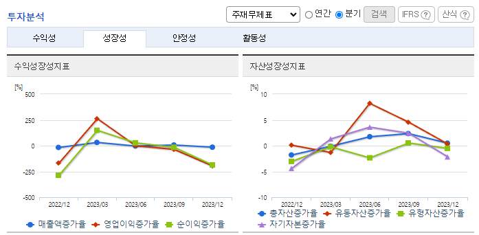 -2023년 9월 전년동기 대비 연결기준 매출액은 0.9% 감소, 영업이익은 17.8% 감소, 당기순이익은 3.2% 감소. 매출액은 소폭 감소하였으나 원가율은 다소 개선되었음. 판관비 증가하며 영업이익과 당기순이익도 감소함. 고수익 중심 판매 포트폴리오 구성 및 적극적인 원가개선 활동을 통해 수익성을 개선하고 기본에 충실한 내실경영을 실시하며 사업확장 기회를 지속 강화할 예정임.