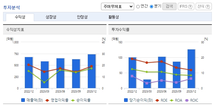 -2023년 9월 전년동기 대비 연결기준 매출액은 9.4% 증가, 영업이익은 2.7% 증가, 당기순이익은 30.6% 감소. 국내외 지역 모두에서 매출이 상승하여 전반적인 사업부에서의 수익이 상승하였음. 이에 따라 영업이익이 상승함. 종속회사인 엑스게이트를 통해 보안사업 강화 및 엑스게이트의 자체 보안솔루션 VPN을 중심으로 동사의 클라우드 호스팅 및 보안관제서비스 사업과 연계할 예정으로 매출 확대가 기대됨.