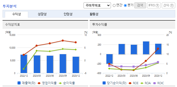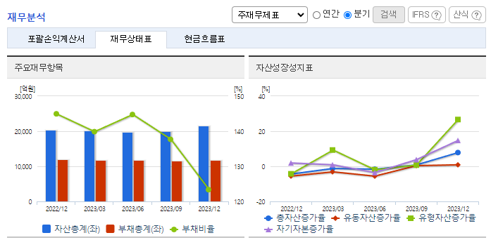 -2023년 9월 전년동기 대비 연결기준 매출액은 17.8% 감소, 영업이익은 18.8% 감소, 당기순이익은 7.7% 증가. 미국의 소비 심리 감소폭이 지속되면서 동사의 자회사인 한세실업의 의류 OEM /ODM 사업부문의 실적이 악화되었음. 동사의 전체적인 매출이 감소했지만 Yes24의 전자상거래 부문에서 지속적인 연구개발 등의 노력으로 당분기 비교적 건실한 매출 실적을 달성함.