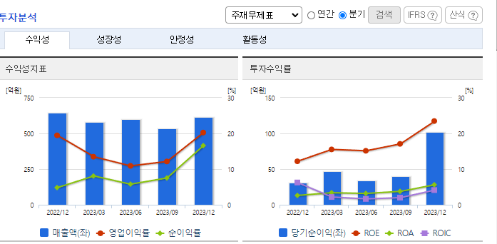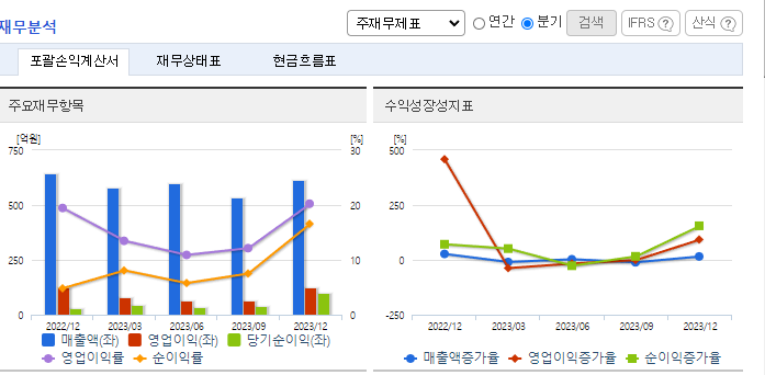 -2023년 9월 전년동기 대비 연결기준 매출액은 7.1% 증가, 영업이익은 63.5% 증가, 당기순이익은 85.1% 증가. 국방부문 매출액이 전년동기 대비 89.2% 증가하며 전체 외형 성장을 이끎. 향후 추가적인 성장 동력 및 수익성 확보를 위한 신규사업으로 생체인증, 첨단 암호기술, 블록체인 인증 기술, IOT 전용 기기인증 및 암호키 시스템을 추진 중임.