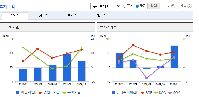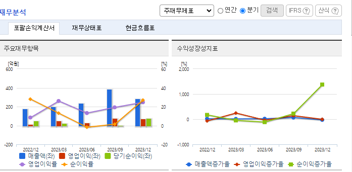 -2023년 9월 전년 동기 대비 연결 기준 매출액은 106.9% 증가, 영업이익은 87.9% 증가, 당기순이익 흑자전환. TV방송 후 익일에 IPTV 3사, 케이블 TV VOD, 주요 인터넷/모바일 VOD서비스 업체에 프로그램을 공급하여 VOD 수익을 극대화하고 있음. Netflix의 VOD 프로그램 공급, 동남아시아 광역 플랫폼과 bilibili 등의 중국계 OTT플랫폼 VOD 유통을 통해 매출을 확대로 안정적인 수익증대함.