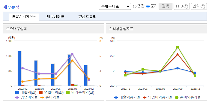 -2023년 9월 전년동기 대비 연결기준 매출액은 27.2% 감소, 영업이익은 49.3% 감소, 당기순이익은 52.2% 감소. Audio제품, Audio부품, 기타 사업부문 모두 전년동기대비 매출액이 감소하고 인건비는 증가하면서 실적이 감소함. D&M, Harman Kardon, Yamaha, NAD 등 세계 유명 바이어들로부터 AV 기기 등을 수주받아 해외현지종속법인 생산공장을 이용하여 제품을 생산 및 수출하고 있음.
