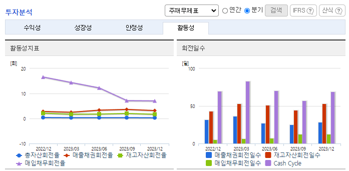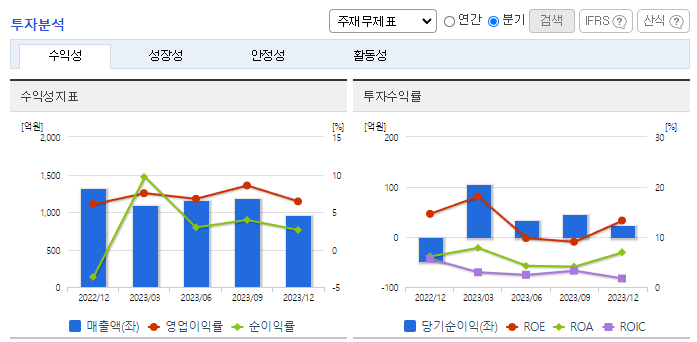 -2023년 9월 전년동기 대비 연결기준 매출액은 9.3% 감소, 영업이익은 24.5% 감소, 당기순이익은 25.2% 감소. 매출액이 감소하고 판관비는 크게 증가하면서 영업이익과 당기순이익 모두 전년동기대비 감소하였음. 국내 바이오연료 시장 성장에 따른 수혜로 중장기 외형성장을 전망. 또한, 글로벌 팜유 가격 안정화로 7~8%의 영업이익률을 유지할 것으로 기대됨.