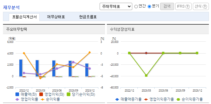 -2023년 9월 전년동기 대비 연결기준 매출액은 16.5% 감소, 영업이익 적자전환, 당기순이익 적자전환. 스테인리스 주요 수요산업 침체에 따른 스테인리스 수요감소와 국내 생산 감소에 따른 수입물량 증가로 매출이 감소함에 따라 적자전환함. 다수의 열연사로부터 원재를 조달하고 탄력적인 재고 운영을 통한 가격 경쟁력을 확보하고 있으며, 다양한 표면 및 강종, 고급 소재 등을 활용하여 판매 경쟁력 강화하고 있음.