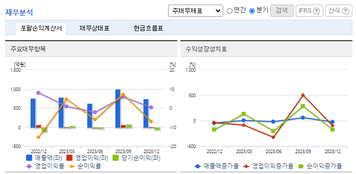 -2023년 9월 전년동기 대비 연결기준 매출액은 15.9% 감소, 영업이익은 67.5% 감소, 당기순이익은 62.5% 감소. 이알루론산필러 등은 전년대비 성과 개선이 있었으나 휴대폰용 부품 사업 부진이 지속되어 외형이 축소되었고, 고정비 부담 증가에 따라 영업손익과 순손익은 크게 악화됨. 고부가제품의 개발, 해외 시장 공략 및 원가 경쟁력 증대 등으로 기존 사업을 성장시키고 의약품, 의료기기, 화장품 사업 등 신규 사업을 추진함.