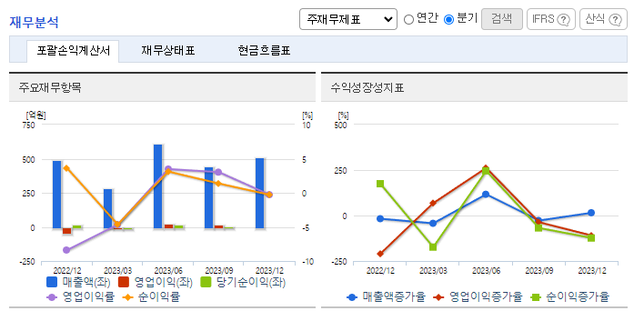 -2023년 9월 전년동기 대비 별도기준 매출액은 13.3% 감소, 영업이익은 69.1% 감소, 당기순이익 흑자전환. 중국에서의 싸고 저급한 상품의 국내 유입으로 인하여 치열한 가격 경쟁을 유발함에 따라 선풍기 가격이 2.5%, 하절기 가전이 1.9% 감소함에 따라서 매출이 감소하였음. 계절상품의 특성은 연간 폭발적인 성장 매출이 발생하지는 않지만 시즌 중 수요증가 요소가 크고 감소효과는 크지 않은 실정이어서 안정적인 판매가 가능함.