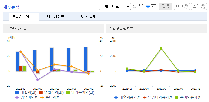-2023년 9월 전년동기 대비 연결기준 매출액은 56.1% 증가, 영업손실은 87.7% 감소, 당기순이익 흑자전환. 매출은 크게 증가했으나, 판관비 등 비용 증가로 영업이익은 여전히 적자를 기록. 이자수익 등으로 당기순이익은 흑자전환함. 주력 매출인 로열티 매출은 차량에 동사의 스마트카소프트웨어 플랫폼 솔루션이 탑재될 때마다 대당 수취하는 매출로, 전년동기대비 로열티 수출 매출액이 크게 증가함.
