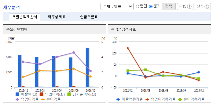 -2023년 9월 전년동기 대비 연결기준 매출액은 16.7% 증가, 영업이익은 181.1% 증가, 당기순이익은 107.2% 증가. 자동차 산업 비수기임에도 불구하고 주요 제품인 자동차 모듈 부품 공급이 확대되면서 외형은 성장함. 전기차 시대를 맞이하여 신기술 신제품 개발을 통해 사업 경쟁력을 한층 강화하고 국내뿐만이 아닌 글로벌 일위 기업으로 나아가 시장을 선도해 나갈 계획임.