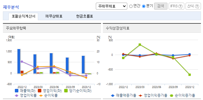 -2023년 9월 전년동기 대비 연결기준 매출액은 22.4% 감소, 영업이익은 57.8% 감소, 당기순이익은 64% 감소. 고객사 자체 생산에 따른 동사 생산품목 단종의 이유로 스마트 테크놀로지스와 계약한 1,029억 원 규모의 전자칠판 납품을 중단하기로 결정하였음. 거래처 중 한 곳인 APMI社가 母회사인 AGA社 소유주의 개인적인 사유로 母회사와 함께 파산함에 따라, 관련비용 약 54억 원(대손상각비 등)을 3분기에 반영함.