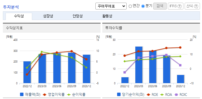 -2023년 9월 전년동기 대비 별도기준 매출액은 0.8% 감소, 영업이익은 64.3% 증가, 당기순이익은 85.8% 증가. 매출 다변화와 거래처 확대 등을 통해 위기를 극복하고자 노력하고 있으며, 매출액은 다소 감소하였으나 매출원가율이 개선되면서 영업이익이 크게 증가하였음. 채널의 다양화에 따라 중소화장품 업체의 시장진출이 늘어나고 있으나 대부분 자체 생산시설을 갖추고 있지 않아 위탁생산업체의 필요성은 점점 늘어날 전망임.