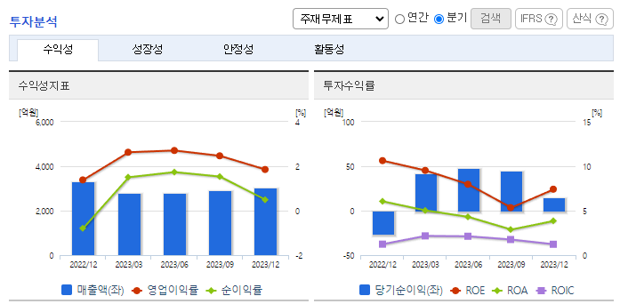 -2023년 9월 전년동기 대비 연결기준 매출액은 6.1% 감소, 영업이익은 14.5% 감소, 당기순이익은 40.7% 감소. 동사는 바이오디젤의 보급확대 및 활성화를 통하여 안정적인 매출 확보와 수익실현을 도모의 목적으로 바이오디젤)을 위한 생산설비 신설하기로 2023년 7월 결정함. LPG 사업부문과 ASP 사업부문의 매출이 전년동기 대비 감소한 데다 각종 비용증가로 영업이익 감소함.