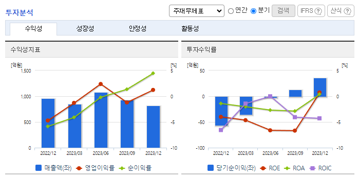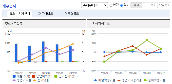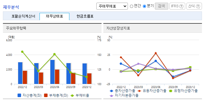 -2023년 9월 전년동기 대비 연결기준 매출액은 26.9% 증가, 영업이익은 96.5% 감소, 당기순이익 적자전환. 외형 성장에도 불구하고 매출원가가 크게 증가하면서 영업이익이 큰 폭 감소하였고, 높은 금융비용으로 인해 순이익은 적자를 기록. 동사는 11월 17일 운영자금 조달을 목적으로 주식 총수 대비 7% 수준인 70억원의 전환사채권 발행을 결정하였음을 공시함.