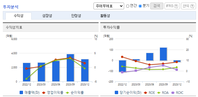 -2023년 9월 전년동기 대비 연결기준 매출액은 13.3% 감소, 영업이익은 39.6% 감소, 당기순이익은 34.1% 감소. 전년동기 대비 중국 LED업체들의 발주량이 30% 이하로 급감하였으며 중국 정부의 지원 축소로 인한 해외 수출부문에서의 매출액 감소. LG 디스플레이 및 LG 전자에 대한 영업확대 및 점유율 향상을 목표로 하고 있으며, 중국 및 일본 등 매출처 다변화를 목표로 영업 활동을 진행 중.