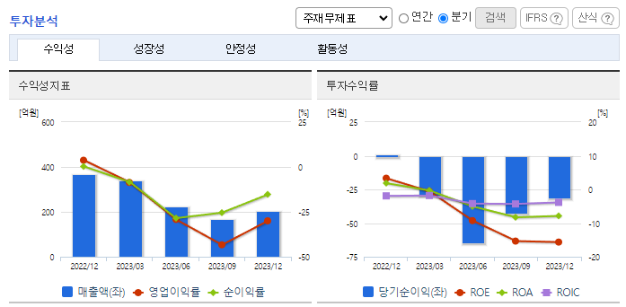-2023년 9월 전년동기 대비 별도기준 매출액은 98.4% 증가, 영업이익 적자전환, 당기순이익 적자전환. 동사는 전년 대비 매출이 큰 폭으로 상승하였으나, 크게 증가한 매출원가와 판관비로 인해 영업손실과 당기순손실 기록함. 고성능 서버 시장 규모 확대와 고용량, 고성능 메모리 채용의 증가로 반도체 경기의 회복 기조가 나타나고 있어, DDR5 패키징 및 테스트, GDDR6 테스트 양산으로 선제적인 대응을 추진함.