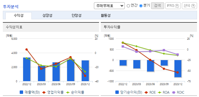 <매출 저하로 영업이익 적자전환>