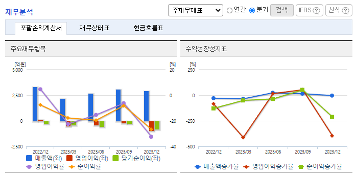 -2023년 9월 전년동기 대비 연결기준 매출액은 42% 감소, 영업이익 적자전환, 당기순이익 적자전환. 매출액은 전방시장의 불확실성 지속에도 불구 MSAP 제품군, DDR5향 제품군 등의 성장에 힘입어 전분기 대비 15% 성장하였으나 전년 동기 대비 매출액은 42% 감소함. 영업이익은 고부가가치 MSAP 제품군 등의 매출증가에 따른 수익성 향상으로 전분기 대비 약 221억 원의 적자폭을 축소하였음.