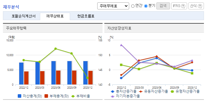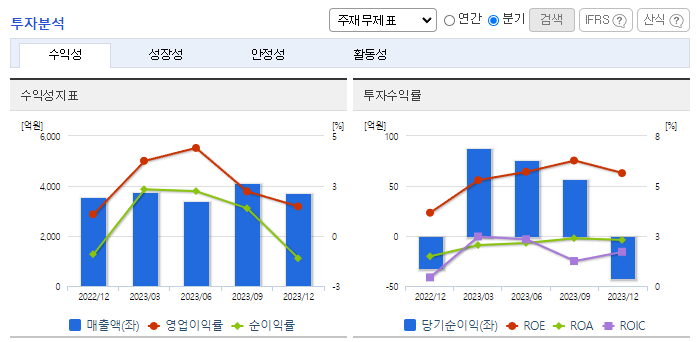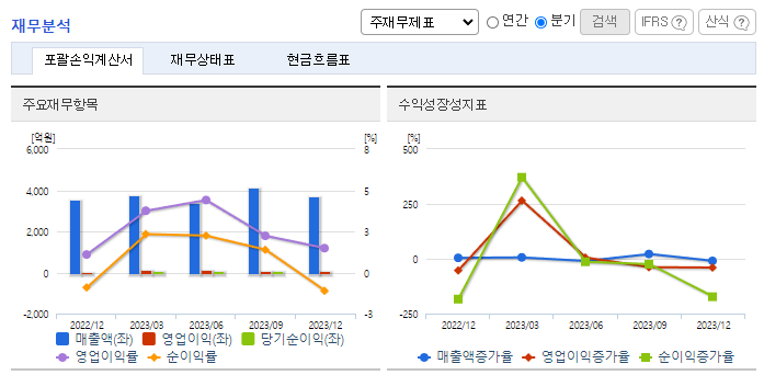 -2023년 12월 전년동기 대비 연결기준 매출액은 5.8% 증가, 영업이익은 53.6% 증가, 당기순이익은 71% 증가. 통신사업부문 매출 부진에도 불구하고 전력사업부문 매출이 전년 대비 8.4% 증가하며 전체 외형 성장을 견인. 인건비 급증에도 불구하고 영업이익은 개선. 현재 영위 중인 사업영역의 확대 및 사업의 시너지를 추구하기 위해 목드럼 생산전문 회사인 ㈜지앤피우드의 지분 100%를 인수.