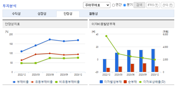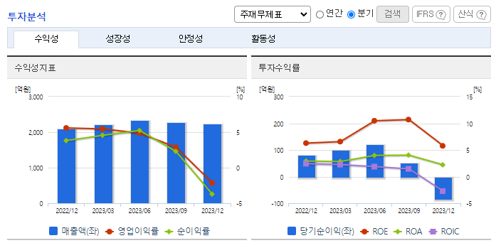 -2023년 9월 전년동기 대비 연결기준 매출액은 57% 증가, 영업이익은 982.3% 증가, 당기순이익은 98.1% 증가. 종속회사인 평택석정파크드림(주)의 분양에 따른 수익이 반영돼 매출액이 크게 증가하였음. 토목부문을 제외한 전사업부문에서 매출이 성장하였으며 특히 건축부문에서 40.8% 증가한 5,681억을 기록하였고 효율적인 비용집행에 따라 영업이익 크게 증가함.