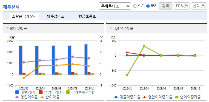 -2023년 9월 전년동기 대비 연결기준 매출액은 6.4% 증가, 영업이익은 109.6% 증가, 당기순이익은 34.6% 증가. 기존 제품의 품질 업그레이드 및 세분화된 고객의 트렌드에 부합하는 신제품의 지속적인 출시를 통한 매출 증가와 비용 절감에 노력. 최근 온라인 시장 등 새로운 소비 시장에 적극 대응함으로써 고객과 소통하고 미래의 성장동력을 마련하는데 최선을 다하고 있음.