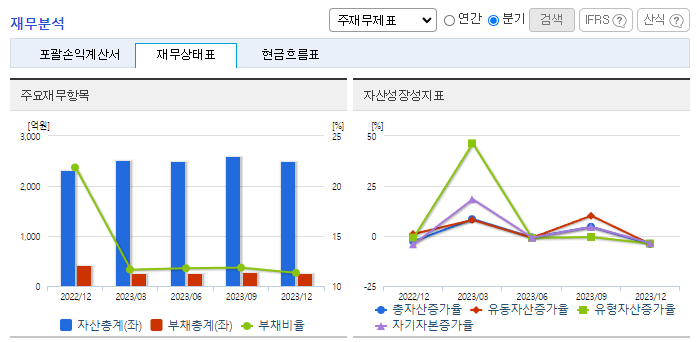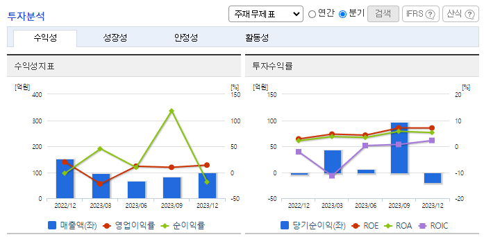 -2023년 9월 전년동기 대비 연결기준 매출액은 10.7% 감소, 영업이익은 10.3% 증가, 당기순이익은 113.6% 증가. TV제품 매출의 감소와 가격 경쟁이 본격화되면서 동사 주력 부분인 TV관련 금형 및 사출 매출이 크게 감소하였음. 매출액 감소에도 불구하고, 일괄 생산 시스템의 장점을 통해 매출원가를 획기적으로 줄이는 데 성공하며 영업이익은 오히려 증가함.