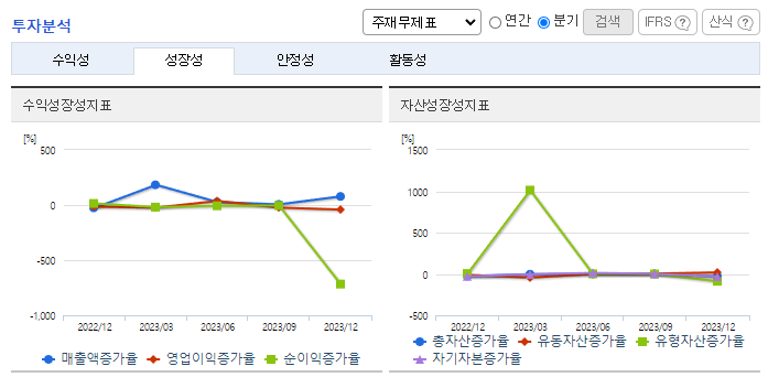 -2023년 12월 전년동기 대비 연결기준 매출액은 207.9% 증가, 영업손실은 125.7% 증가, 당기순손실은 308.8% 증가. 아이티노매즈 합병으로 인해 매출액이 대폭 증가했음. 종속회사인 한빗코코리아의 사업특성에 따라 판매비와 관리비가 증가, 영업이익은 감소함. 동사는 인공지능, 빅데이터 시스템, 클라우드 설루션 개발 및 서비스 사업 등을 신규사업으로 추진하고 있음.