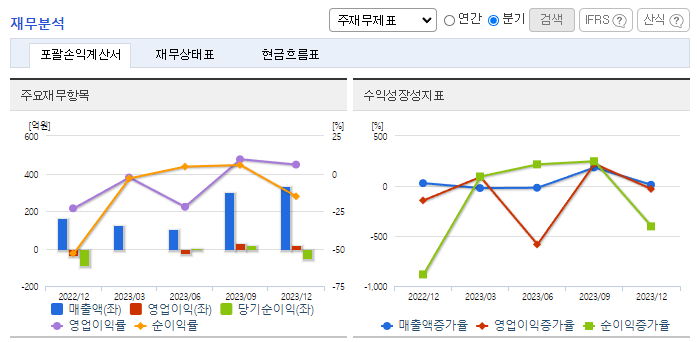 -2023년 12월 전년동기 대비 연결기준 매출액은 64% 증가, 영업이익 흑자전환, 당기순손실은 36.2% 감소. 동사는 '보글봇'을 앞세워 신성장 동력으로 점찍은 푸드테크 분야에서 국내외 시장 공략을 시작함. 세계 최초로 개발한 플립칩-볼그리드어레이(FC-BGA) 반도체 패키지용 ‘양면 세정 쏘&소터’를 중국 시장에 수출을 시작하였고, 하반기에도 수출성과를 이어갈 것으로 기대됨.