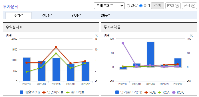 -2023년 12월 전년동기 대비 연결기준 매출액은 0.1% 감소, 영업이익은 94.6% 증가, 당기순이익은 832.3% 증가. 주요 원재료인 코일 및 선재 등이 국제 정세불안과 수급 불균형으로 원자재 가격이 지속적으로 상승하였으나 매출실적 호조로 영업이익 증가함. 영농태양광사업의 성장가능성을 보고 특화된 영농형 태양광 연구개발, 도로안전시설물과 접목한 방음시설태양광, 솔라가드레일 등의 연구개발을 통해 기술 경쟁력 확보에 노력 중임.