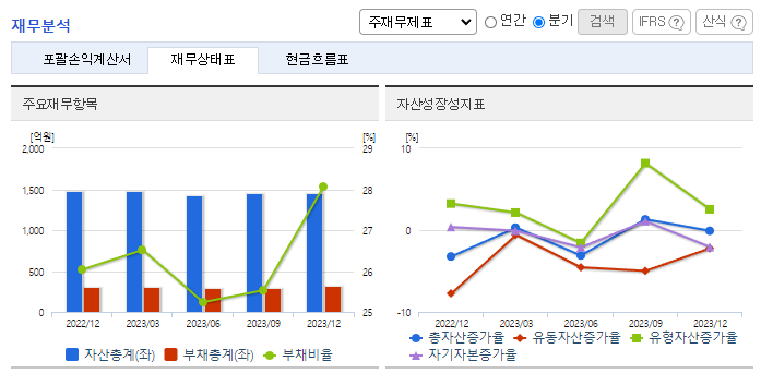-2023년 12월 전년동기 대비 연결기준 매출액은 24.1% 감소, 영업이익 적자전환, 당기순이익 적자전환. 전방산업의 부진으로 특히, 반도체향 및 모바일향 매출이 급감하면서 매출액이 감소하게 되면서, 그에 따른 이익이 크게 감소함. D램에 신규 적용되는 메탈파워인덕터의 생산 수율 향상 및 영업 경쟁력을 강화하여 지속 성장이 예상되는 서버향 제품 라인업의 매출 증진을 위해 노력 중임.
