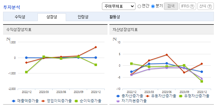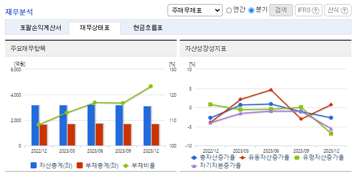-2023년 12월 전년동기 대비 연결기준 매출액은 5.9% 증가, 영업이익 적자전환, 당기순손실은 192.6% 증가. 코로나 시기의 가구 선행적 지출, 주택매매거래 하락, 금리 상승 등으로 소비심리 위축이 맞물리면서 전년 대비 큰 폭의 매출성장을 시현하지 못함. 매출액은 소폭 증가 하였으나 영업이익은 전년 대비 감소했으며, 현금창출단위(CGU) 평가에 따라 기타 영업 외 비용이 증가함.