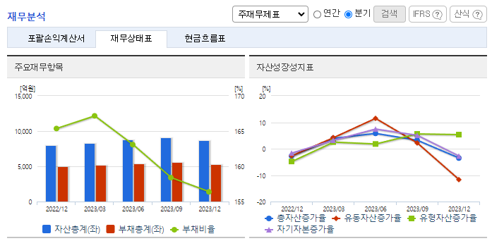 -2023년 12월 전년동기 대비 연결기준 매출액은 10.2% 증가, 영업이익은 60.4% 증가, 당기순이익은 41.5% 증가. 반도체 등 부품 수급 차질 해소, 친환경차 및 SUV 판매호조, 전년도 기저효과 등에 따라 전년 대비 외형 성장에 성공. 매출 증가와 원가율 개선에 힘입어 영업이익도 대폭 증가. 부가가치가 높은 SUV 및 전기차 신규 수주 등 사업 확대를 추진 중.