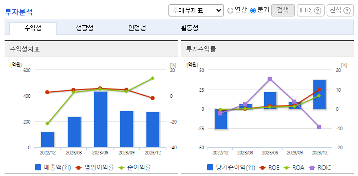 -2023년 12월 전년동기 대비 별도기준 매출액은 389% 증가, 영업이익은 372% 증가, 당기순이익 흑자전환. 2023년 미니시리즈 '폭삭속았수다', '돌풍', '국민사형투표'를 제작공급 하였으며 향후 IP를 활용한 부가가치 창출이 기대됨. 최근 국내 방송사의 광고 매출 감소 추세로 드라마 투자가 위축되었으나 동사의 드라마는 넷플릭스, SBS 등에 원활하게 편성됨에 따라 실적이 견고하게 유지될 것으로 예상.