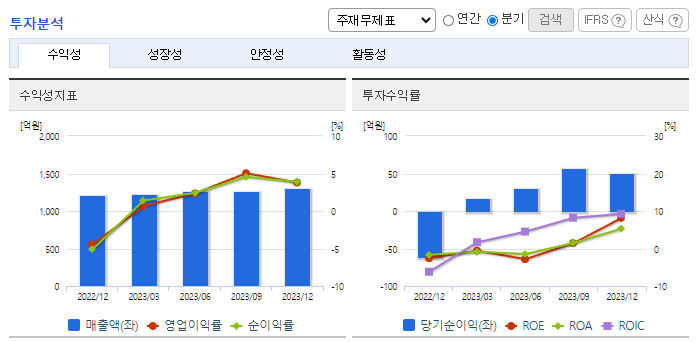 -2023년 12월 전년동기 대비 연결기준 매출액은 11.9% 증가, 영업이익 흑자전환, 당기순이익 흑자전환. 자회사인 오아시스의 실적 성장으로 인하여 전체 실적이 개선되었음. 오아시스의 온라인 플랫폼 및 오프라인 매장에서의 매출 성장. 오아시스마켓의 주력 상품군인 식품의 온라인 성장률은 22.4%의 성장속도를 기록하며 평균 온라인 성장률을 뛰어넘으면서 계속해서 거래액 규모를 키워가고 있음.