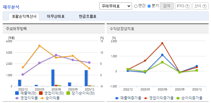 -2023년 12월 전년동기 대비 연결기준 매출액은 191.6% 증가, 영업이익 흑자전환, 당기순이익 흑자전환. 중국시장을 중심으로 활발한 영업활동과 SK이노베이션의 해외공장 투자에 따른 수주 확대 이후 유럽, 미국 지역 등 글로벌 회사의 수주가 증가하며 매출 확대됨. 이차전지 조립공정 전체를 Turn-key로 제작 가능한 세계 유일의 업체로서 국내외 활발한 영업활동을 수행함.