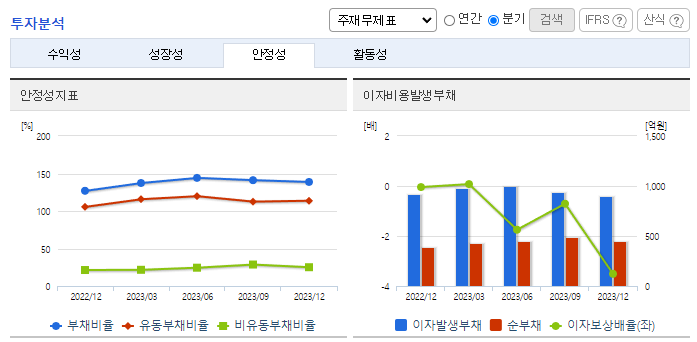-2023년 12월 전년동기 대비 연결기준 매출액은 29% 감소, 영업이익 적자전환, 당기순이익 적자전환. 동사의 주요 수출지역인 미국의 내수 경기가 기대에 미치지 못함으로써 미국지역으로의 매출이 감소하면서 전체 매출액이 29% 감소하는 결과를 맞음. 영업이익은 판매관리비의 고정비 비중이 증가함에 따라 1억 6000만 원의 적자를 나타내었으며 법인세차감전순이익은 지분법손실의 증가로 96억 원의 적자를 냄.