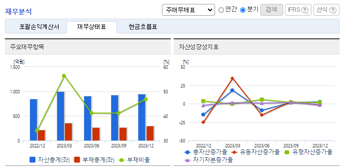 -2023년 12월 전년동기 대비 연결기준 매출액은 17.7% 감소, 영업이익 적자전환, 당기순이익은 4% 감소. 지역별 거점 우수 매장을 보유한 유통망을 확충함과 동시에 기업 대상 영업 전문유통망을 확보함. 또한 가구 이외 판매유통망 확보를 통해 다양한 판매채널을 보유해 이를 기반으로 시장점유율을 높이고 있음. 상대적으로 봄과 겨울 시즌이 성수기이므로 이에 따른 매출 영향이 있을 수 있음.