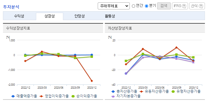 -2023년 12월 전년동기 대비 연결기준 매출액은 8.3% 감소, 영업이익은 42.8% 감소, 당기순손실은 72.8% 감소. 중국 법인의 영업 유통망을 통합하여 적극적으로 직영점 및 대리점을 개설하여 유통망을 확대 중임. 국내 영업 부진과 해외영업 부진으로 트라이 사업 부분은 전기 대비 3,012백만 원 감소하였으며, 마트사업 부분은 885백만 원 감소하였으며, 해외 사업부문은 6,118 감소함.