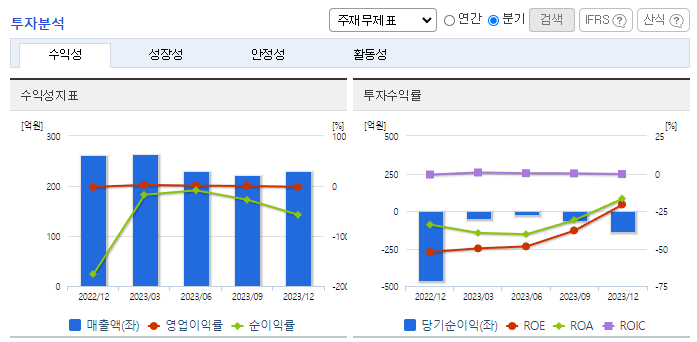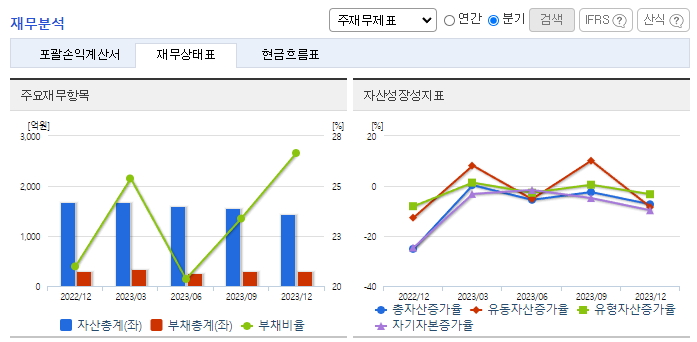 -2023년 12월 전년동기 대비 연결기준 매출액은 8.3% 감소, 영업이익은 42.8% 감소, 당기순손실은 72.8% 감소. 중국 법인의 영업 유통망을 통합하여 적극적으로 직영점 및 대리점을 개설하여 유통망을 확대 중임. 국내 영업 부진과 해외영업 부진으로 트라이 사업 부분은 전기 대비 3,012백만 원 감소하였으며, 마트사업 부분은 885백만 원 감소하였으며, 해외 사업부문은 6,118 감소함.