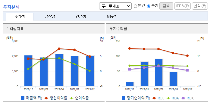 -2023년 12월 전년동기 대비 연결기준 매출액은 1.1% 감소, 영업이익은 19.3% 증가, 당기순이익은 20.7% 감소. 경기침체에 따른 화스너 수요 감소로 전체 매출은 소폭 감소. 선박용 케이블 자회사인 티엠씨는 조선업 상승 주기에 힘입어 실적 개선세를 나타내며 연결 실적 증대에 기여함. 자회사 티엠씨는 조선업 상승 사이클에 따른 수혜를 극대화함은 물론 북미 광케이블 사업을 확대로 실적 개선 노력.