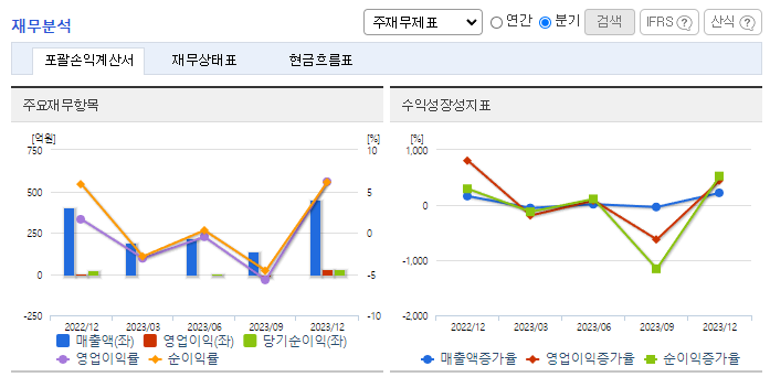 -2023년 12월 전년동기 대비 별도기준 매출액은 0.1% 증가, 영업이익은 52.4% 감소, 당기순이익은 32.9% 감소. 동사는 디지털 전환에 대응하며 침체된 경기에도 불구하고 지난해 부분 목표를 달성하는 성과를 기록하며, 선방하는 모습을 보임. 2024년에도 동사의 주요 사업은 클라우드 전환 및 확산과 맞물려 강력한 성장세를 이어 나갈 것으로 예상하고 있음.