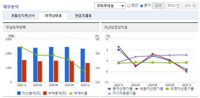 -2023년 12월 전년동기 대비 연결기준 매출액은 8.4% 감소, 영업이익은 875.5% 증가, 당기순이익은 610% 증가. 글로벌 기초 원재료의 안정화로 인하여 전체적인 판매가의 안정적인 흐름으로 이어지게 되면서 매출 감소로 이어짐. 원가율 개선과 판관비 등 비용 절감 노력으로 영업이익은 증가. 고부가가치를 창출할 수 있는 자동차전선 생산의 확대를 목적으로 설비투자를 함으로써 신제품개발 및 원가절감 활동에 힘씀.