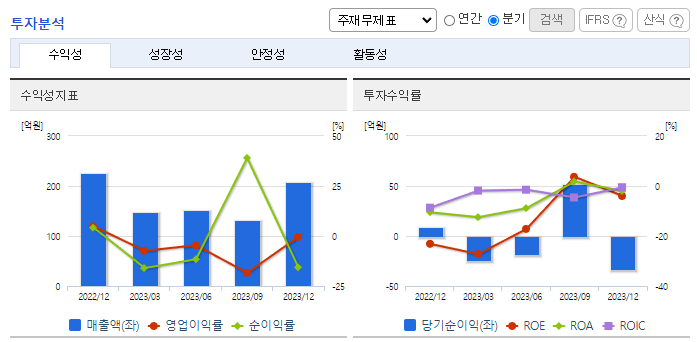 -2023년 12월 전년동기 대비 연결기준 매출액은 8.1% 증가, 영업손실은 63.1% 감소, 당기순손실은 83.7% 감소. 동사의 항공사업은 항공기정밀부품 공급계약의 일부품목에 한해 계약기간 연장에 성공함으로써 잠재적 위협 요소의 해소에 성공함. 동사의 원자력 및 ISI사업의 경우 점진적인 점유율 회복에 성공하며, 매출액 및 영업손익 구조의 개선이 발생하고 있음.