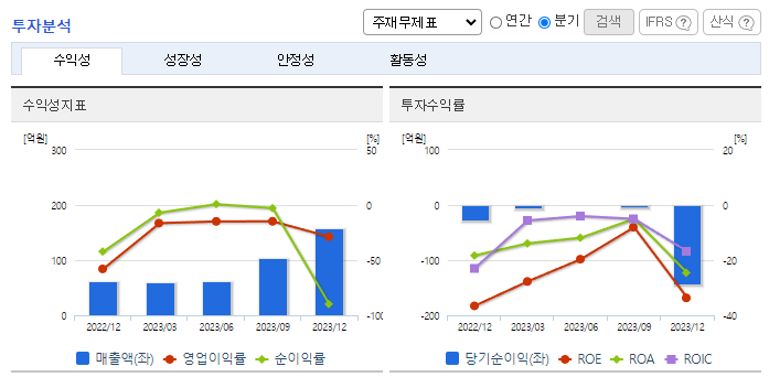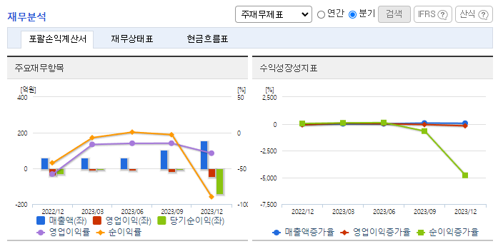 -2023년 12월 전년동기 대비 연결기준 매출액은 8.3% 증가, 영업손실은 20.8% 증가, 당기순손실은 38.2% 증가. 수익성이 높은 AI스피커 매출이 급격히 감소하면서 동사의 매출은 악화됨. 연결 실적 기준 매출은 올랐지만, 동사의 별도 매출은 크게 감소하였음. AI 스피커의 경우 네이버를 통해 LG U+ 에 공급하고 있으며, 네이버는 통신사, 온라인, 오프라인등 다양한 채널을 통해 제품을 판매 중임.