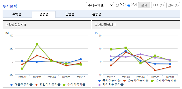 -2023년 12월 전년동기 대비 연결기준 매출액은 5.3% 증가, 영업이익은 24.3% 감소, 당기순이익은 12.3% 증가. 피팅밸브 사업 매출 증가로 외형 성장을 이루고 있음. 단 원가율 악화와 판관비 비중이 높아졌고 특히 연구개발비의 비중이 높아져 영업이익이 감소됨. 발전산업분야에서는 신축, 증설 예정인 원자력 발전소 및 각 지역 발전소에 업체등록을 하여 신규 진출하는 등 매출의 확대 및 시장의 다변화를 추진 중임.