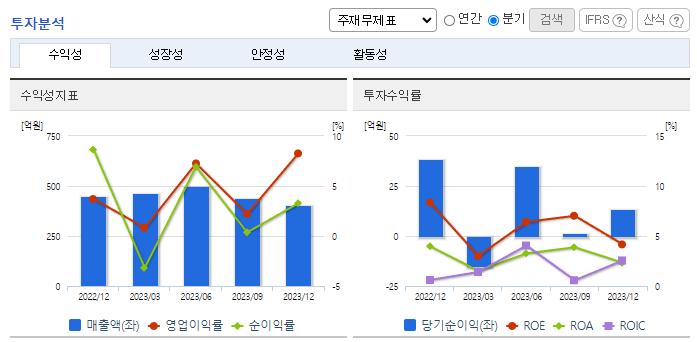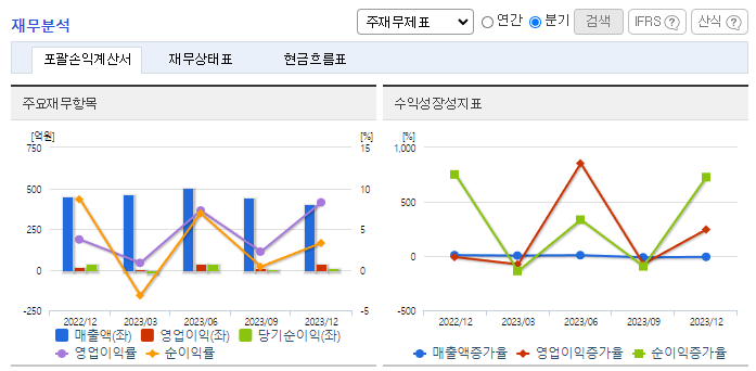 -2023년 12월 전년동기 대비 별도기준 매출액은 4.3% 증가, 영업이익은 10.5% 감소, 당기순이익은 41.2% 감소. 영업이익 감소 원인은 코로나19 사태 이후 경제 성장 둔화와 소비재 물가 상승 등 대 내외 경제 성장 지표가 좋지 않았기 때문임. 사의 공격적인 마케팅과 알루미늄 시장의 원재료상승 및 LME시세의 다변화의 악영향에도 불구하고 원가 절감효과 노력으로 매출은 소폭 증가함.
