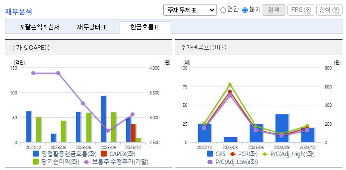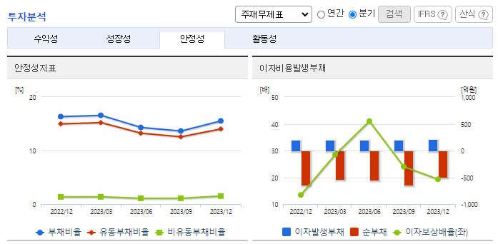 -2023년 12월 전년동기 대비 연결기준 매출액은 2.7% 감소, 영업이익은 18.1% 감소, 당기순이익은 10.1% 감소. 게임 시장 전반적인 성장 둔화 및 비용 증가 등으로 인해 영업이익과 당기순이익은 각각 전년대비 18.1%, 15.4% 감소함. 지속적인 시장 확대 및 신규 게임 출시, K-콘텐츠 및 엔터테인먼트 사업 부문의 수익 창출 등을 통하여 매출액 상승에 기여할 예정임.