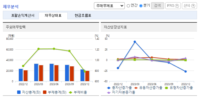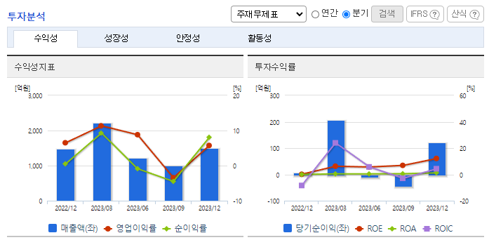 -2023년 12월 전년동기 대비 연결기준 매출액은 3.1% 감소, 영업이익은 1,636.8% 증가, 당기순이익은 10,565.4% 증가. 불확실한 경제 여건 속에서도 동사는 영업력을 강화하고 원가 절감과 업무 효율화를 통한 생산성 향상을 위한 노력을 꾸준히 지속한 결과 창사 이래 최대 매출 실적과 영업이익을 달성함. 다양한 고객사 니즈를 충족하고 고부가가치 수주를 유치해 견고한 성장세를 이어갈 계획,