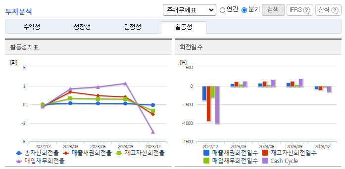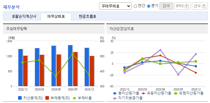-2023년 12월 전년동기 대비 연결기준 매출액은 35.7% 감소, 영업손실은 236.5% 증가, 당기순손실은 1350.6% 증가. 원자재가격 상승 등의 영향으로 인해 매출원가 절감 등의 노력을 경주하였으나 93억 원의 영업손실과 429억 원의 당기순손실이 발생함. 친환경제품, 메디칼섬유, 기능성섬유등 신제품 개발에 주력하고 있으며 해외시장개척과 원가절감 노력에도 전사적인 노력을 집중함.