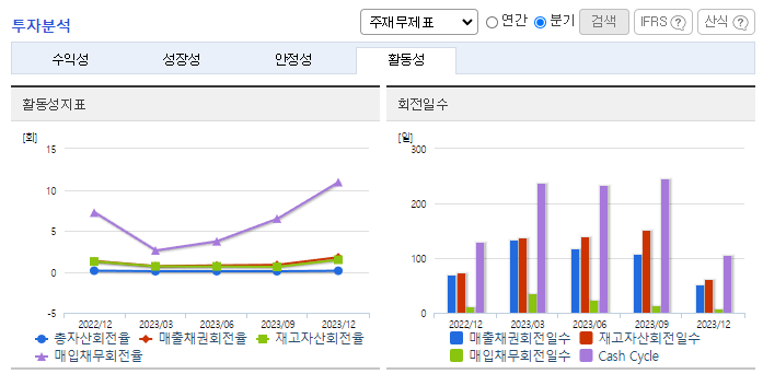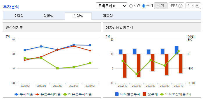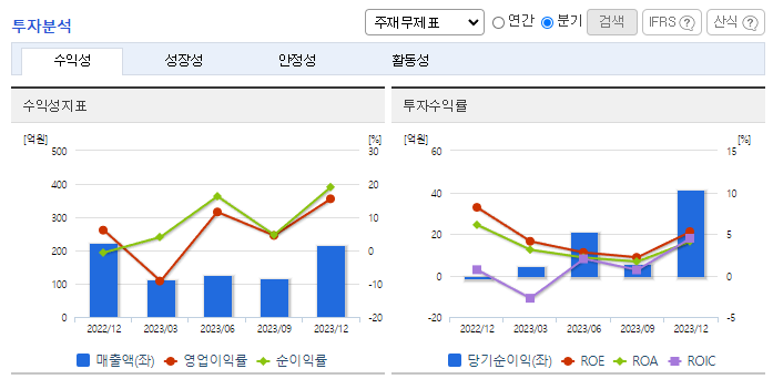 -2023년 12월 전년동기 대비 연결기준 매출액은 21.4% 감소, 영업이익은 67.7% 감소, 당기순이익은 33.4% 감소. 지난해 전방산업의 신규투자 축소로 디스플레이 장비 수출이 감소했고 판매비와 관리비는 오히려 늘면서 영업이익이 전년 대비 크게 악화했음. 부채는 전기 대비 30.01% 증가한 441억 원. 부채의 주 증가요인은 당기 천안공장 신축공사와 관련된 시설자금대출로 인한 차입금의 발생임.
