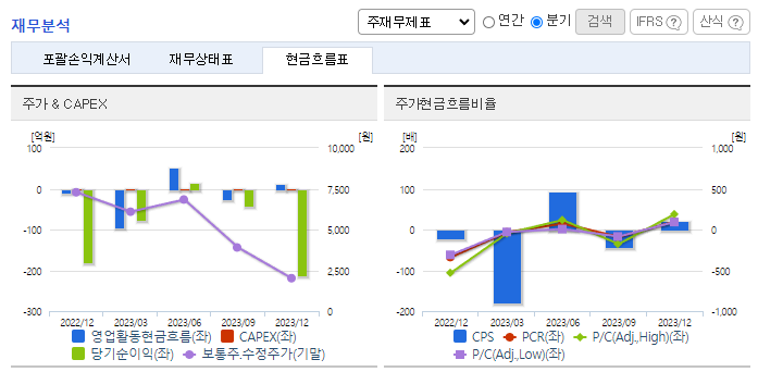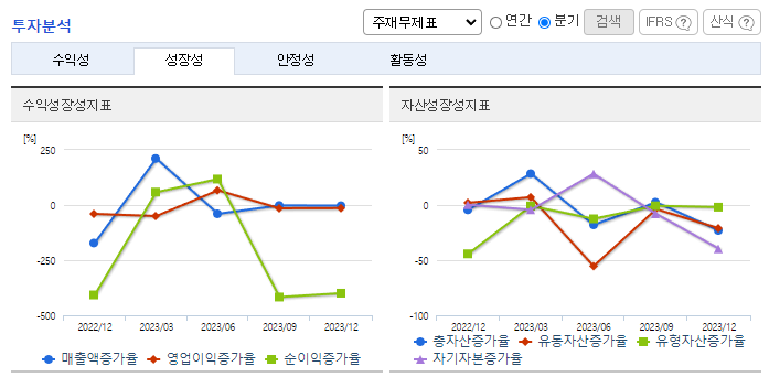 -2023년 12월 전년동기 대비 연결기준 매출액은 19.5% 감소, 영업손실은 19.6% 증가, 당기순손실은 31% 증가. 매출 감소와 원가율 악화, 판관비 등 비용 증가에 따라 수익성이 악화됨. 의류사업 부문 매각에 따른 매출감소가 실적 부진 주 요인. 물류사업을 더욱 강화를 위한 4차 산업의 기술을 접목한 스마트 물류전환, 스마트 물류 시스템 전환을 위한 IT 시스템 및 플랫폼을 개발해 나가고 있음.