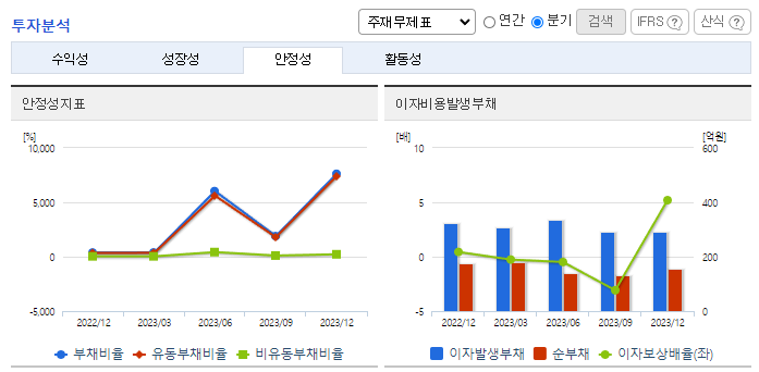 -2023년 12월 전년동기 대비 연결기준 매출액은 25.8% 감소, 영업이익은 97.6% 감소, 당기순손실은 305.5% 증가. 소화기 사업부문 매출이 감소와 더불어 부동산개발 사업부문에서도 매출이 크게 줄어듬에 따라 전체적인 매출이 감소. 원가율 악화에 영업이익 대폭 감소 SK하이닉스, 포스코, LG전자, 삼성전자 등에 NOVEC(노벡) 1230 가스계 소화설비 등을 공급하여 시장 주도적 위치를 확고히 하고 있음.
